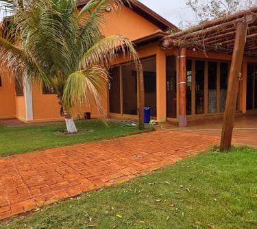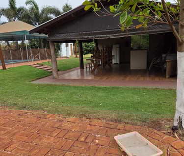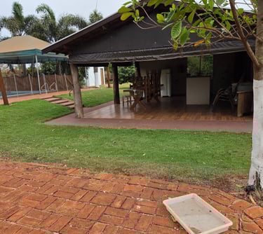 Área com 2500 m², sendo aproximadamente 250 m² de área construída, piscina, pomar formado, painel solar, poço artesiano, condomínio fechado, lago, quiosques e parque de lazer.