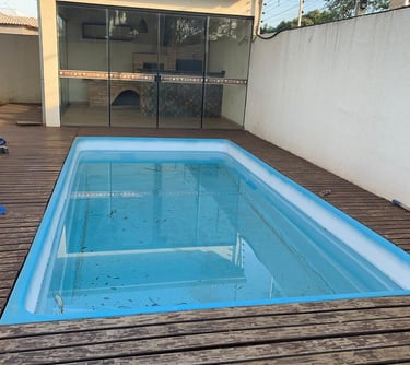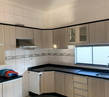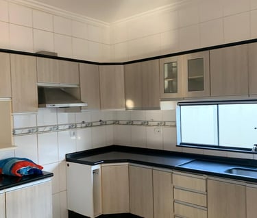 Casa de esquina, três apartamentos planejados, sala e cozinha planejada, piscina, área gourmet caipira e garagem para dois quartos.